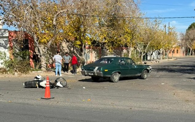 Según fuentes policiales, cerca de las 14.30, un auto y una moto protagonizaron un siniestro vial, en la esquina de calle Comandante Cabot y Sargento Acosta, en Rivadavia.