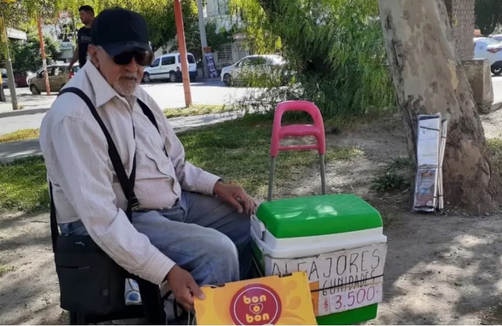 Con su gorra y gafas negras, “Leo” era una figura familiar en una transitada esquina de Cipolletti, donde vendía alfajores, caramelos y otras cosas dulces. Siempre dijo ser un jubilado de un banco de Mar del Plata, que se “buscaba el mango” en la plaza.