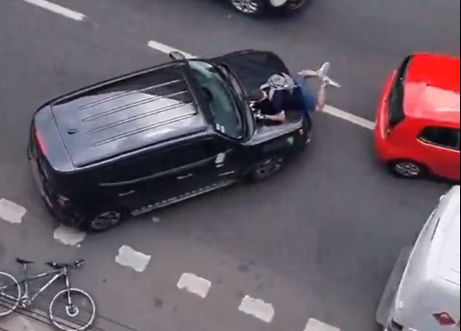 De acuerdo al relato oficial, la mujer arrancó su camioneta de manera repentina, arrastrando la bicicleta del ciclista enganchada en la parte trasera por unos diez metros. Cuando detuvo el vehículo, la víctima se posicionó delante para evitar que huyera. Sin embargo, la joven volvió a iniciar la marcha, llevándolo esta vez sobre el capot a lo largo de una cuadra hasta detenerse a metros de la esquina con Mendoza, tal cual se observa en las imágenes.