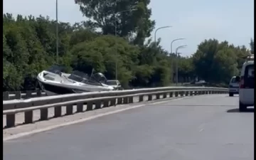 Una camioneta Amarok blanca circulaba por el anillo interno de Circunvalación, entre Catamarca y Mendoza, llevando un trailer con una lancha. Por motivos que se desconocen el carro se desprendió y la embarcación salió despedida quedando incrustada en el espacio de desagüe entre las calzadas.
