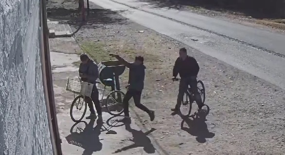 En el video puede observarse como el joven delivery a bordo de su bicicleta playera llega a un domicilio el sábado en horas del mediodía. Saca su celular para dar aviso al cliente y no se percata que dos sujetos (aparentemente uno menor de edad) llegan en bicicleta, lo acorralan, lo apuntan con un arma para robarle todas sus pertenencias y la bicicleta, quedando sin su herramienta de trabajo.