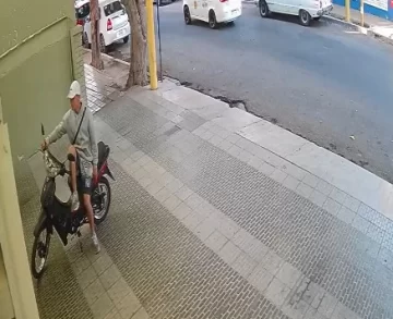 Una maniobra estudiada y practicada principalemente, así es cómo se ve en las imágenes de cámaras de seguridad de un hotel cuando se roban una moto. El hecho ocurrió en calle Avellaneda antes de 9 de Julio, en Capital, cerca de la 7 de la mañana.
