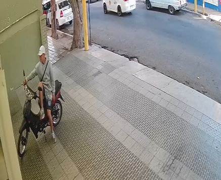 Al registrar las cámaras, advirtió que un muchacho, dueño de lo ajeno, realizó una curiosa artimaña para poder llevarse la moto que estaba con traba. El delincuente se había sentado y con la rodilla derecha apoyada sobre el manubrio realizó una palanca que, en segundos, dejó al rodado sin seguro, lo que permitió que se la pudiera llevar caminando.