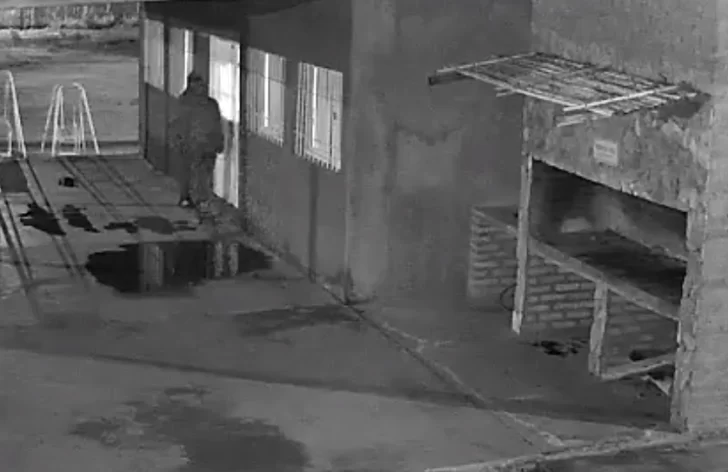 En las cámaras de seguridad del lugar, se puede ver a dos hombres forzar la reja de una ventana por donde después sacaron varios objetos del salón, entre ellos un freezer. Para mover el electrodoméstico, se ven en las imágenes a cuatro personas.