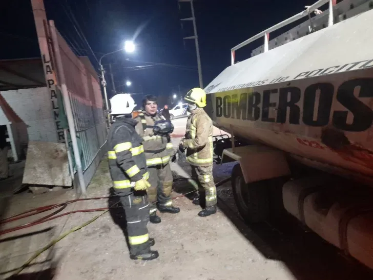 Varias dotaciones de bomberos acudieron al lugar para contener el fuego debido al peligro de que se extendiera, sin control, a las casas vecinas al predio ubicado en Villa Huarpe, sobre calle Independencia, a metros del Lateral Oeste de Ruta 40.