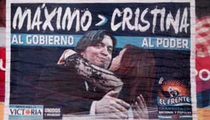 Buenos Aires, 7 de abril.- Hoy aparecieron nuevos carteles que parecen tener la misión de postular al hijo de la jefa de Estado como Presidente. Los afiches muestran la imagen de la Presidenta y su hijo abrazándose bajo la consigna "Máximo al Gobierno, Cristina al Poder" y dejan la idea de que se intenta instalar la posibilidad de una candidatura nacional del líder de La Cámpora.