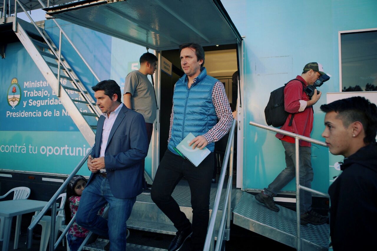 El tráiler de Empleo Joven del Ministerio de Trabajo, Empleo y Seguridad Social de la Nación llegó a San Juan y se instalará en Santa Lucía y Capital. Este lunes 8 se realizó el acto de presentación al que asistieron el intendente de Santa Lucía, Marcelo Orrego; el diputado nacional de Cambiemos, Eduardo Cáceres, y la responsable de la Gerencia de Empleo en San Juan, Viviana López.