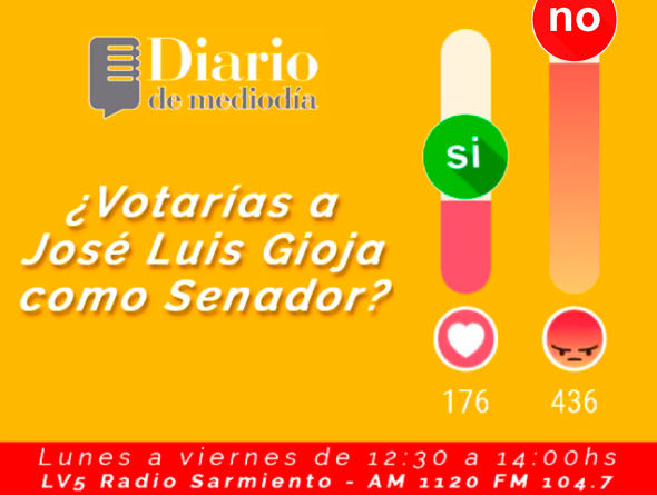 Luego de que el intendente de Rawson, Juan Carlos Gioja, propusiera a su hermano José Luis como candidato a senador nacional, en el programa Diario de Mediodía, que se emite de lunes a viernes de 12:30 a 14 por Radio Sarmiento, se realizó un sondeo en las cuentas que el programa tiene en las redes sociales con una consigna clara: ¿Votarías a José Luis Gioja como senador?