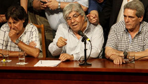 Buenos Aires, 20 de noviembre.- En una conferencia de prensa realizada en el edificio de la CGT de la calle Azopardo, Moyano tomó la palabra en primer termino, secundado por Micheli y otros dirigentes de las centrales obreras disidentes que encabezaron el cese de actividades en todo el país.