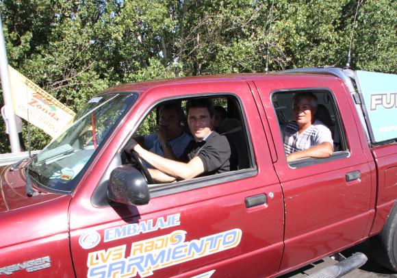 Sergio Uñac se animó a todo con tal de seguir de cerca la Vuelta Ciclística a San Juan. Primero, un efectivo policial lo llevó en su moto. Después, aceptó la invitación que le hicieron y se animó a manejar el móvil de LV5.