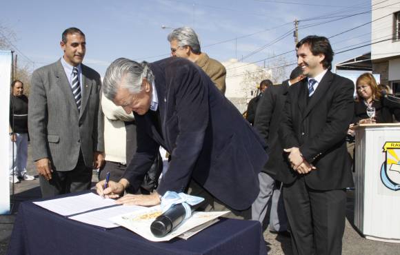 Con un acto en la intersección de España y Cabot, en Rawson, se dio inicio ayer a un nuevo frente de obras en la construcción del subsistema cloacal del departamento. Para minimizar las molestias a los vecinos, con zanjas abiertas y máquinas trabajando, irán trabajando por tramos de unos 200 metros cada uno. También se firmaron los acuerdos para realizar una nueva perforación para reforzar el servicio de agua potable a una población de unos 11.000 habitantes y se ampliará la red del Callejón Vargas.