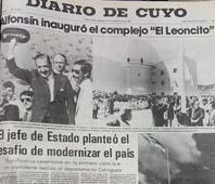 El motivo principal de la visita de Alfonsín fue la inauguración del Complejo Astronómico ‘El Leoncito’. Además hubo alocuciones referidas a la explotación del sulfato de aluminio, una actividad que por entonces era muy importante en el distrito cordillerano.