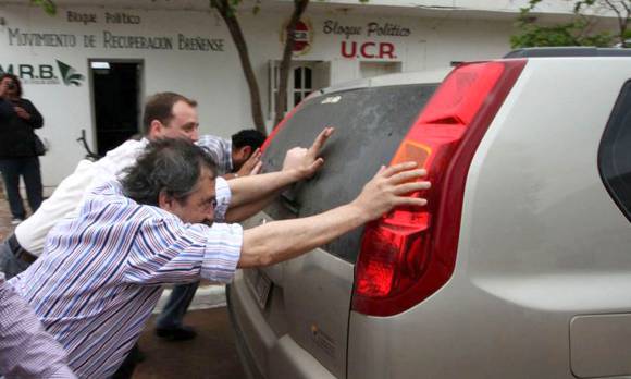 Durante su visita a la ciudad de Las Breñas, en la provincia del Chaco, el diputado nacional Ricardo Alfonsín tuvo un notable percance. A la salida de la intendencia, donde hubo un acto y después una conferencia de prensa del diputado, se le quedó el auto sin batería. Por eso se arremangó la camisa y con la ayuda de sus colaboradores se puso a empujar el vehículo para que arranque.
