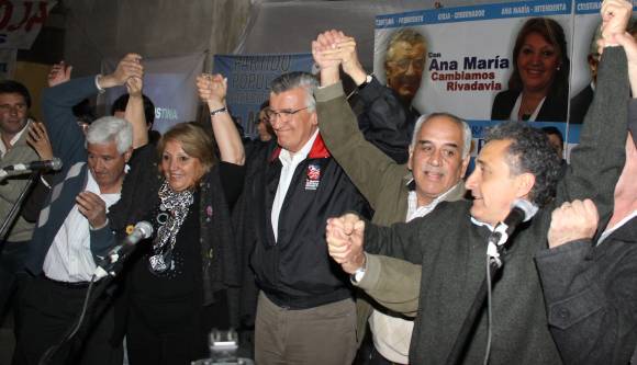 Lleno total, banderas, afiches, euforia y el ritmo de batucada que no paró de sonar en toda la noche. Así, José Luis Gioja proclamó anoche a Ana María López como la candidata a intendente de Rivadavia del Frente para la Victoria. Fue en el salón de la Comunidad Boliviana, en el corazón del Barrio Aramburu, en el primer acto de campaña que encabeza el líder del PJ en el departamento, que fue uno de los dos donde el oficialismo tuvo un enfrentamiento interno el 14 de agosto para definir a sus postulantes -el otro, Chimbas-.