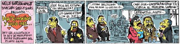 Buenos Aires, 11 de mayo.- En el número del domingo pasado, la historieta se refiere a "los argentinos y la la ley de matrimonio entre personas del mismo sexo".