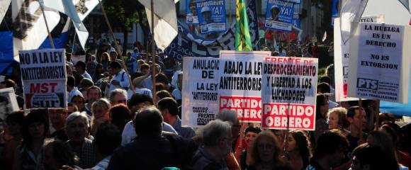 Partidos y organizaciones sociales, entre ellas la CTA, expresaron ayer su rechazo a la ley antiterrorista en un acto realizado frente a la Casa Rosada. La titular de las Madres de Plaza de Mayo, Hebe de Bonafini, que no tomó parte en la marcha, aseguró: ‘Esta ley de antiterrorismo habría que analizarla un poco más. Hay jueces de la dictadura que la pueden aplicar como ellos quieran‘. Los intelectuales K de Carta Abierta también manifestaron su rechazo a la iniciativa aprobada por el Congreso.