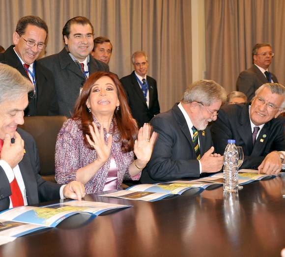 Luego, en ese mismo salón, Brasil y Argentina realizaron la reunión bilateral. Y Cristina Fernández calificó a los convenios como "fruto del trabajo conjunto de los gobiernos reafirmando el trabajo de ambos países y la asociación estratégica de ambas naciones".