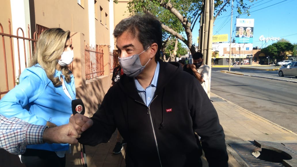 Marcelo Arancibia, precandidato de Consenso Ischigualasto, llegó pasadas las 9.30 al Colegio Don Bosco para emitir su voto. Lo hizo en compañía del referente de ADN, Martín Turcumán.