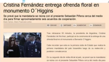 Santiago 16 de marzo.- La realidad argentina y sanjuanina claramente es distinta a la chilena, pero en algunos untos se cruza. Si bien no pasó desapercibida la cumbe de presidentes y el hecho que una jefa de estado se quede dos días en un mismo país, acompañada por una representativa comitiva, los problemas cotidianos de la capital chilena, la importancia fue disímil según quien lo cubriera. Para los medios chilenos fue una noticia más, mientras que para los argentinos y especialmente los sanjuaninos, la relevancia del encuentro era de tremenda importancia.