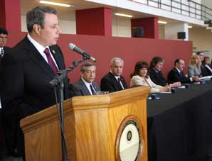 San Juan, 1 de Julio.- Esta mañana se llevó adelante el acto oficial de asunción de las nuevas autoridades de la Universidad Nacional de San Juan. La ceremonia contó con un importante marco de público, integrado por familiares, jóvenes militantes, la comunidad educativa, autoridades salientes y el vicegobernador de la provincia, Sergio Uñac, la ministro de Educación, Cristina Díaz, y Monseñor Alfonso Delgado.
