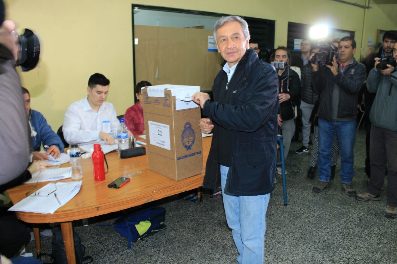 Roberto Basualdo fue uno de los primeros candidatos en emitir su sufragio. Minutos después de las 9, llegó a la Escuela Industrial y habló con la prensa. "Contento de estar acá, estuve esperando en la sede que se hagan las 9 para poder venir. Creo que la próxima vengo más temprano para poder desocuparme y recorrer escuelas", dijo entre sonrisas.