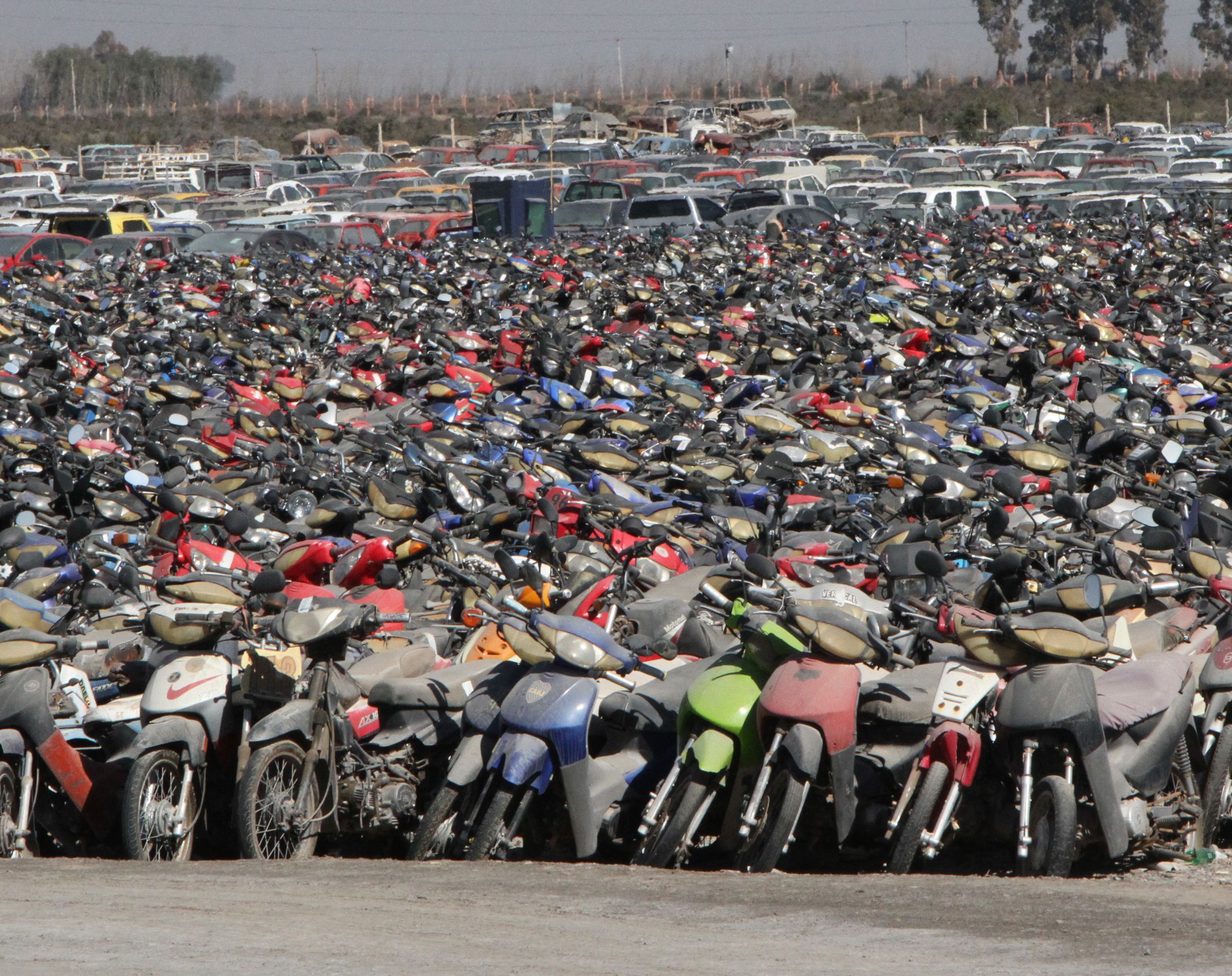 Mil es la cantidad de vehículos de dos ruedas que hay en el depósito de 9 de Julio. Por lejos es la movilidad que domina el paisaje en el predio que tiene el gobierno.