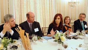 Al encabezar un almuerzo con empresarios norteamericanos, la primera mandataria destacó que Argentina termina este año de pagar sus deudas por "el famoso corralito" y pronosticó que el próximo año será "mas amesetado" respecto del pago de deudas.
