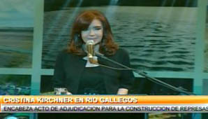 La Presidenta hablaba esta tarde en un acto de anuncio de construcción de represas en la ciudad de Río Gallegos.
