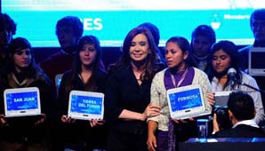 Buenos Aires, 12 de julio.- La Presidenta inauguró la segunda edición de la muestra científica y tecnológica en Villa Martelli, donde entregó la netbook número dos millones a una joven formoseña de la comunidad quom.