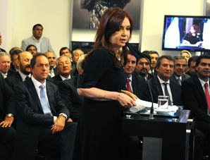 "Por primera vez tenemos una ley con una mayoría como no se había votado ninguna ley desde el `83 a la fecha, por eso las gracias a las fuerzas políticas de la oposición y también a nuestra propia fuerza política. Como decía ayer nuestro presidente de bloque, el diputado Agustín Rossi, somos un movimiento político que sostiene sus convicciones ya sea con aplausos o con huevazos", enfatizó Cristina.