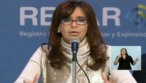 Buenos Aires, 28 de abril.- La presidenta Cristina Fernández destacó hoy la política de desarme implementada en su gobierno, al recalcar que ‘contribuye al tema seguridad‘ y subrayó la ‘reducción notable de autorización para tenencia y portación de armas‘.