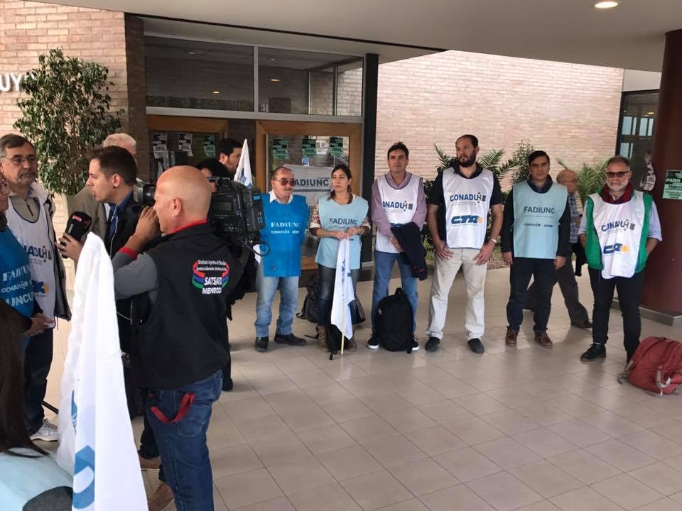 La Mesa Ejecutiva de la CONADU Histórica junta a su gremio de base FADIUNC, estuvieron presentes hoy en la sesión del Consejo Superior de la Universidad Nacional de Cuyo donde lograron retrotraer la intensión del rectorado de aplicar descuentos a las y los docentes que se adhirieran a los próximos paros.