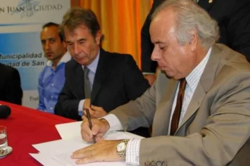 San Juan, 5 de abril.- El intendente Marcelo Lima presidió la firma de convenio de concesión para la explotación comercial de la vía pública del departamento.