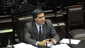 Sobre lo que llamó la "ley de pago soberano" de la deuda externa, que en días girará el Senado a la Cámara para completar su sanción, el jefe de Gabinete precisó que la norma ratifica que "la Argentina paga, cumple su voluntad" y da una alternativa a los tenedores de bonos reestructurados que deberían cobrar su cupón en Nueva York el próximo 30 de septiembre.