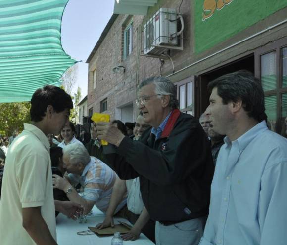 Los candidatos del Frente para la Victoria en Angaco, Omar Blanco (intendente) y Héctor Pezé (diputado), realizaron una ruidosa caravana de campaña ayer por las calles del departamento, junto a José Luis Gioja y su compañero de fórmula, Sergio Uñac. El gobernador encabezó también un operativo de entrega de anteojos en la villa cabecera del distrito, visitó un centro de jubilados angaquero y a través de un programa de ayuda social del Ministerio de Desarrollo Humano, le entregó un módulo habitacional a un anciano de escasos recursos que vivía en una casa precaria.