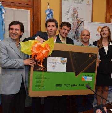 En la entrega de premios a los usuarios del servicio de agua potable que están al día con sus pagos, el vice Uñac tuvo que hacer un gran esfuerzo para entregar un LED de 42 pulgadas ante las risas de los otros funcionarios, porque al parecer la caja pesaba más de la cuenta.