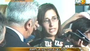 San Juan, 27 de octubre.- Daniela Castro, candidata que ingresó en lugar de Margarita Ferrá de Bartol, se refirió esta noche al triunfo del Frente para la Victoria en las elecciones legislativas.