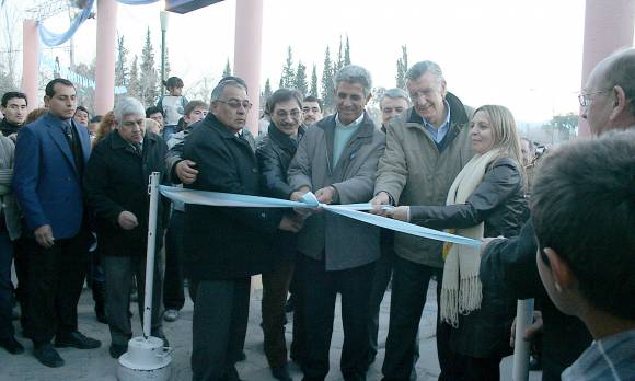 El gobernador José Luis Gioja visitó ayer el departamento 9 de Julio, para estrenar junto al intendente Walberto Allende una decena de obras. El corte de cinta más importante fue en la inauguración del primer cajero automático del Banco San Juan que se instala en la villa cabecera (foto). Por otra parte, dejaron habilitados más de 10 mil metros cuadrados de pavimento en las calles Paraguay y Diagonal Sarmiento y 51 de iluminación; además de poner la piedra basal del inicio de obras de dos barrios y la nueva comisaría del departamento.