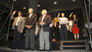 Muy emocionado, el gobernador recordó el aporte realizado por el ex presidente para el crecimiento de la provincia. Gioja mencionó la construcción de cientos de casas, escuelas y caminos, para la algarabía de la multitud que llegó hasta el lugar.