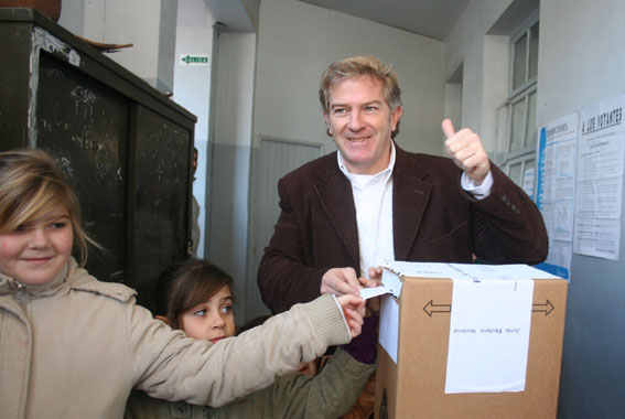 San Juan, 28 de junio.- La Escuela Obreros del Porvenir, de Capital, fue el establecimiento donde se hizo presente el candidato en primer término por el Acuerdo Cívico y social, Rodolfo Colombo, para emitir su voto.