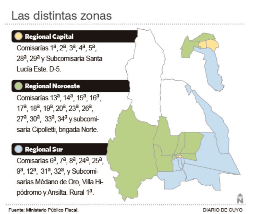 -La provincia se dividió en 3 sectores. En cada región van a haber 4 ayudantes fiscales, tres desde 7 a 22 y uno toda la noche. Siempre va a haber un ayudante fiscal de turno, que será dirigido por un fiscal de flagrancia, que a su vez, va a ser coordinado por Médici o Guillén. Es decir, cuando un ciudadano concurra a una dependencia policial, siempre va a haber un ayudante.