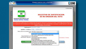 Buenos Aires, 9 de agosto.- La Cámara Nacional Electoral habilitó el envío vía web de un archivo que permita acreditar una razón válida para no haberse acercado a las urnas.