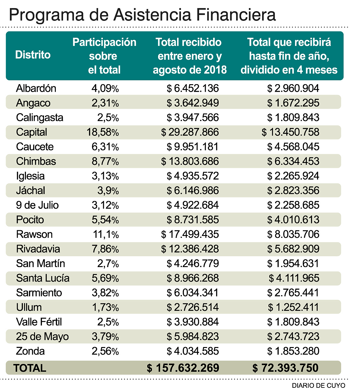 525 Millones de pesos son los que hasta agosto llegaron a San Juan por el Fondo Federal Solidario. Por ley, el 70 por ciento queda en las arcas provinciales. El resto va a los municipios.