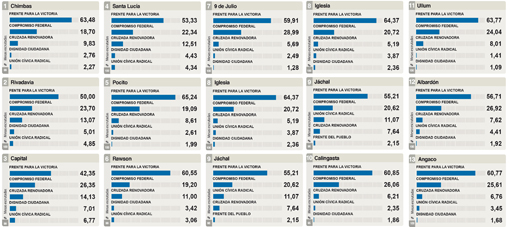El Frente para la Victoria se impuso en todos los departamentos. Según los datos aportados por el Ministerio del Interior, ya se escrutaron el 99,67 por ciento de las mesas de la provincia.