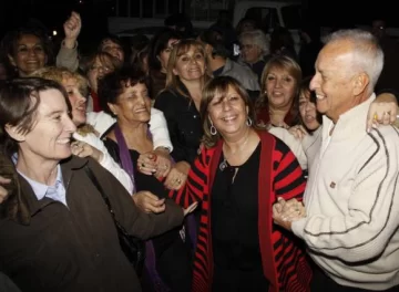 Anoche el festejo se produjo en la puerta del bunker de la Celeste, en la calle San Luis casi España, donde no faltaron los besos y abrazos entre los simpatizantes de la lista oficialista y los papelitos para darle color a la celebración.