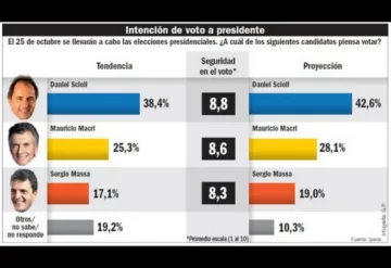 De confirmarse esa proyección, el actual gobernador bonaerense se convertiría en presidente electo ese mismo día: su más inmediato perseguidor, Macri, queda proyectado a más de 14 puntos, por lo que no habría segunda vuelta.