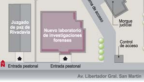 En la misma licitación se incluyó la ampliación de la actual Morgue Judicial. El proyecto prevé que la superficie cubierta del lugar se amplíe unos 73 m2, destinados al área de radiología. Hoy, los forenses que necesitan realizarles rayos x en un cuerpo, deben subirlo a una camilla y trasladarse 150 metros hasta llegar a la zona de rayos del Hospital Marcial Quiroga.