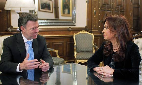 De la reunión entre la Presidenta argentina y Santos no se proporcionó información, aunque el comunicado de la Cancillería destacó que "sirvió para repasar la agenda bilateral y temas regionales".