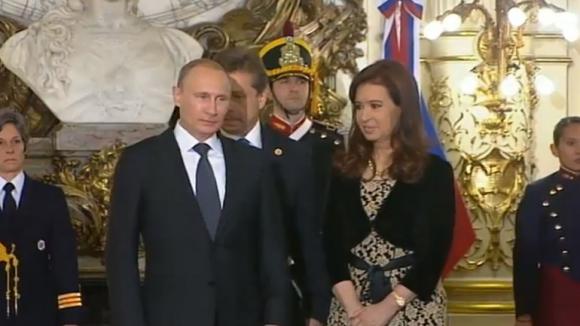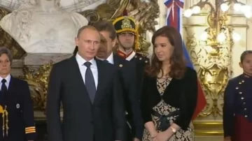 Buenos Aires, 12 de julio.- El presidente de Rusia, Vladimir Putin, arribó este sábado a la Argentina en el marco de una gira por toda Latinoamérica. El primer mandatario se encontraba pasadas las 13 reunido con Cristina Kirchner en la Casa de Gobierno, en un encuentro en el que se busca profundizar los vínculos bilaterales.