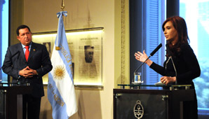 Por su parte, Chávez se refirió al aporte de Argentina para la creación de la Unasur, al señalar que "desde Néstor y ahora Cristina el gobierno argentino jugó un gran papel para la configuración de una gran unidad del bloque sudamericano" y calificó al bloque sudamericano como "vital" para la región.